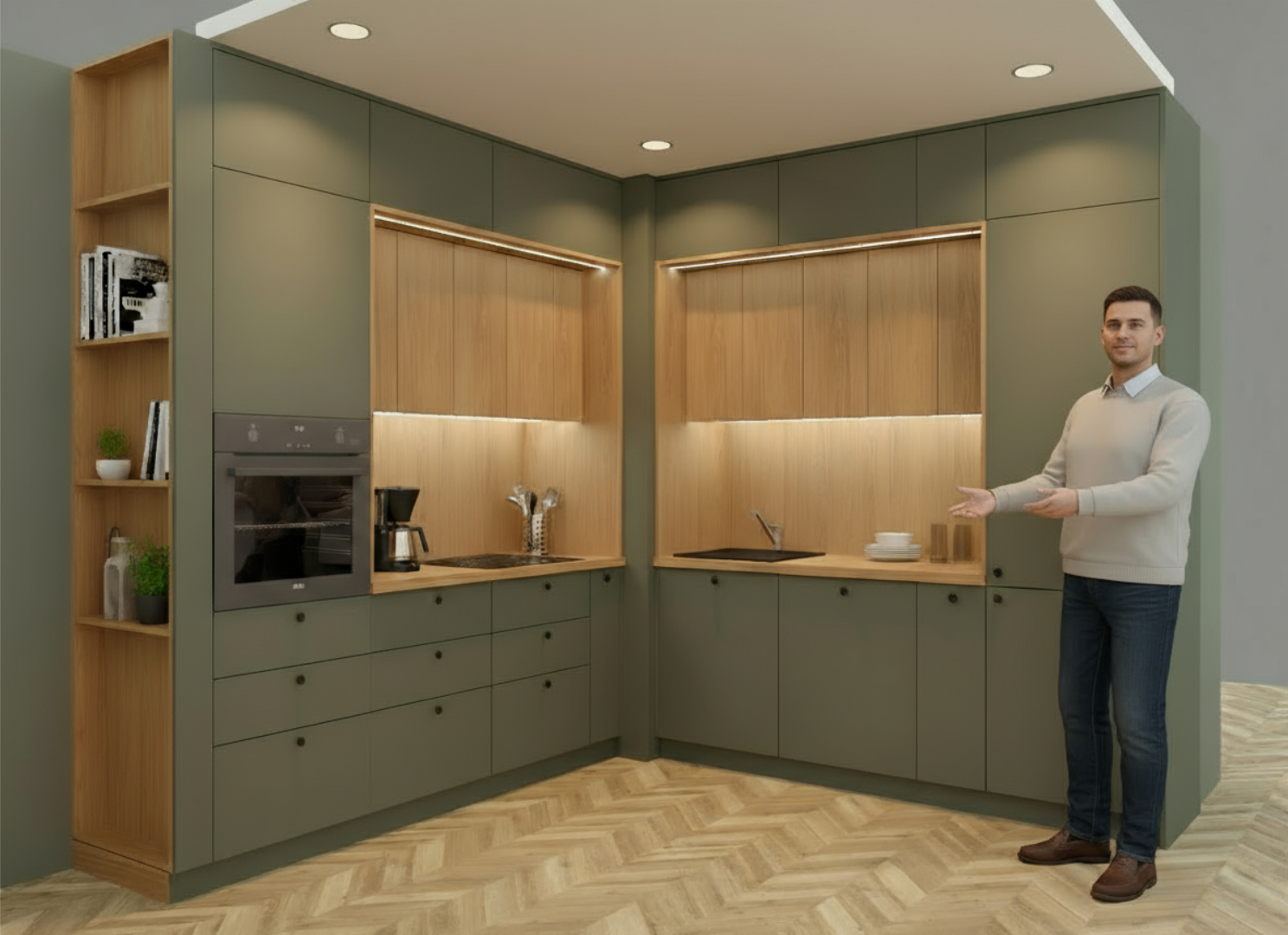 Każda realizacja zaczyna się od konsultacji. Doradzę Ci w kwestii układu szafek, okuć, systemów i materiałów, jak również dostosuję się do Twoich wymagań i potrzeb. To dzięki rozmowie, zrozumieniu i wizualizacjom 3D możliwe jest przeniesienie Twojej wymarzonej wizji z głowy – na tym etapie na papier.
